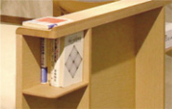 | 目覚まし時計や携帯電話、眼鏡、本などを置ける宮付きベッドです。モノの落下を防止するペン返し付き。B6サイズの本が入る収納棚が便利です。 |